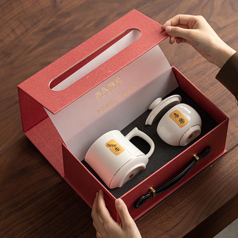 Su's Ceramic Mutton Fat Jade Porcelain Tea Master Cup Gift Set