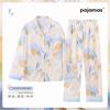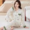 Baumwollimitat Pyjama Damen Herbst pastoral floral langärmlig lässige Mode Loungewear mittelgrüner Anzug