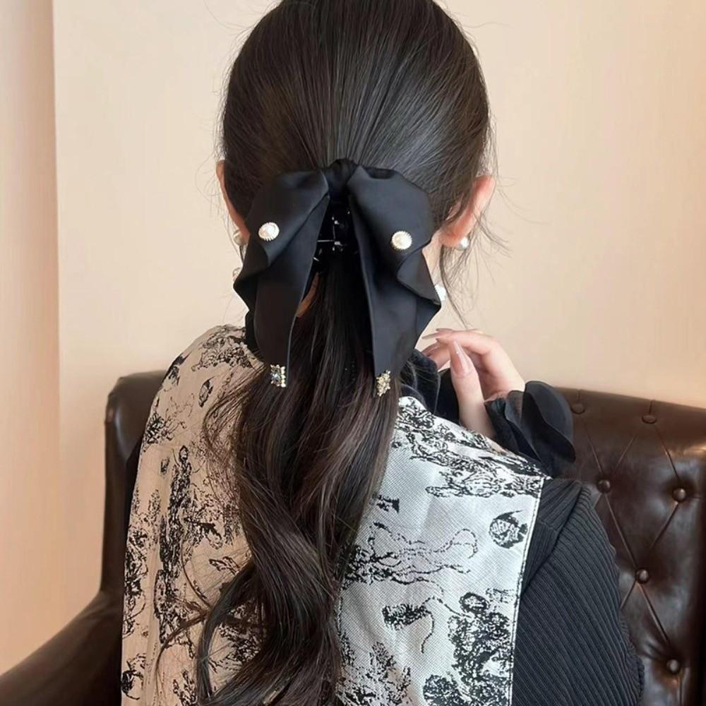 Beads Shiny Rhinestone Hair Claw Elegant Women Sequin Hairgrips Fashion Black Bow Shark Clip Daily