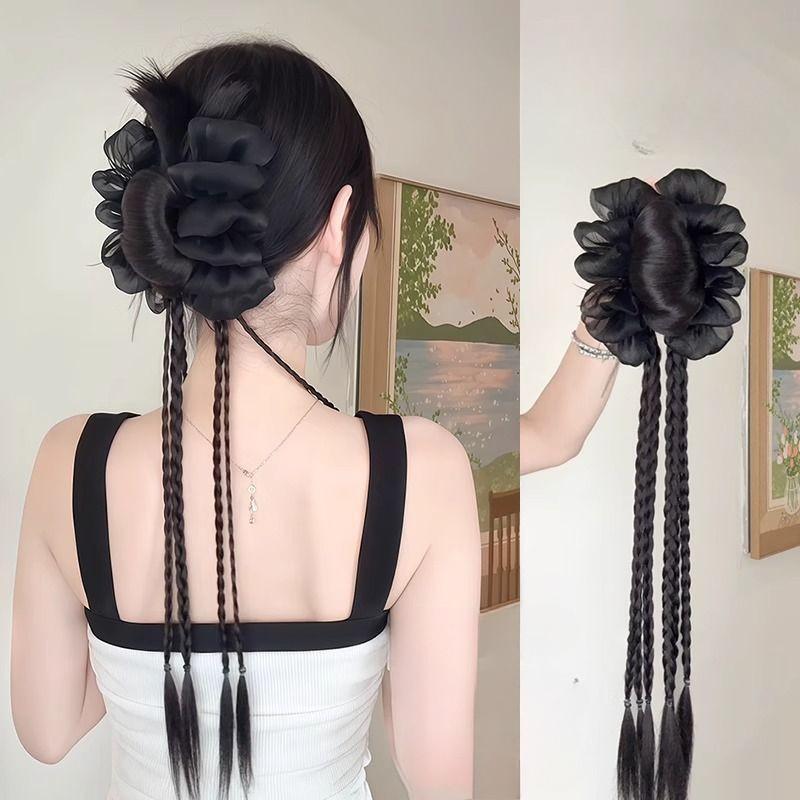 Synthetic Ponytails Chinese Style Lace Twist Braid Clip-on Wig Natural Low Ponytail Headdress