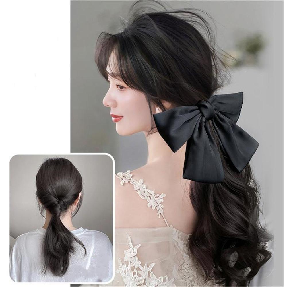 Pferdeschwanz Synthetische Perücke Lang Lockig Haarspange Simuliertes Echthaar Süße Schleife Tiefer Zopf