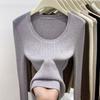 Spring 2025 texture u-neck pit strip inner top female slim slim slim Spice Girls style ins knitted backing sweater