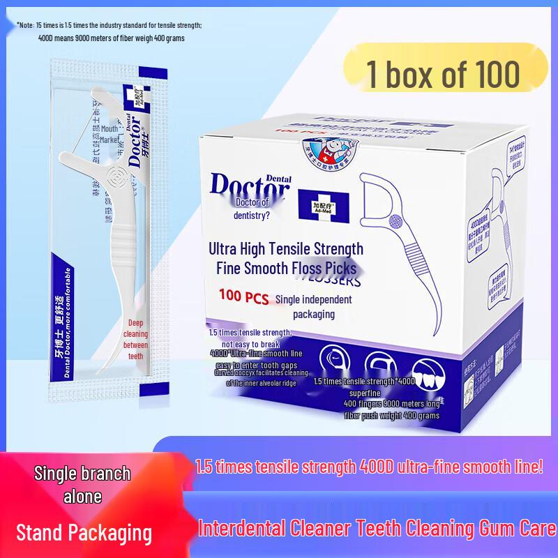 Yaboshi Ultra-Fine Individually Wrapped Dental Floss Picks, 100 Count