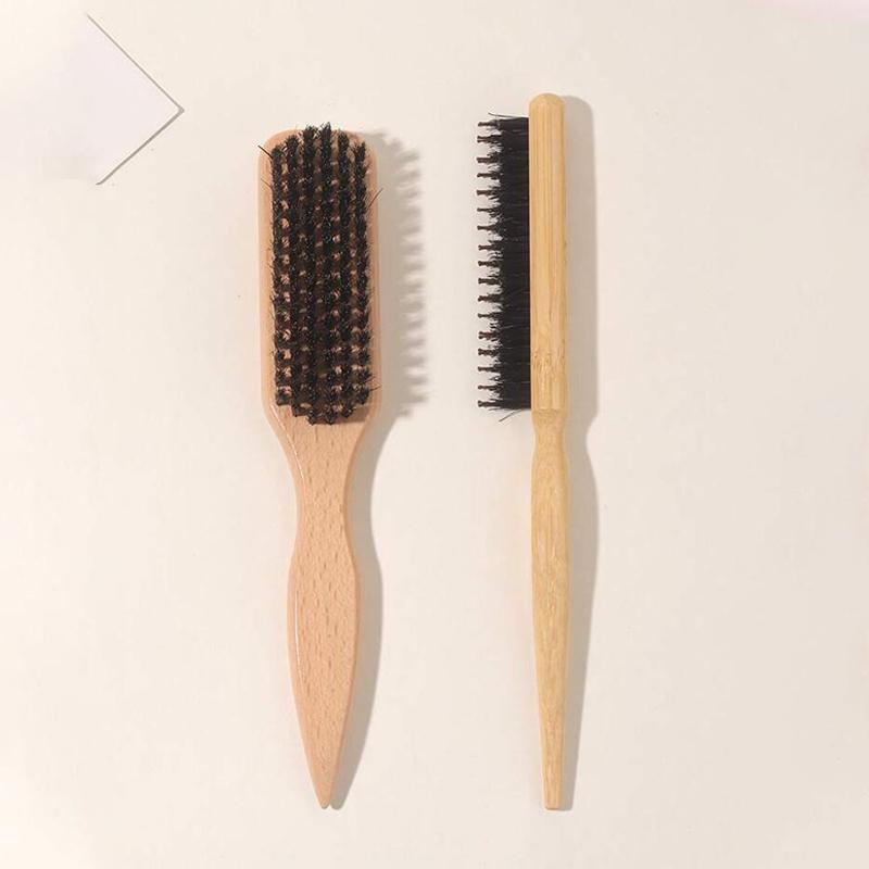 2 Pcs Luxury Boar Bristle Hair Brushes - for Sleek Ponytails, Smooth Hair, Volumizing & Edge Control - Backcombing & Detangling