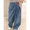 Women's Spring/Summer Design-Forward Oversized Wide-Leg Denim Pants with Drape and Floor-Sweeping Hem