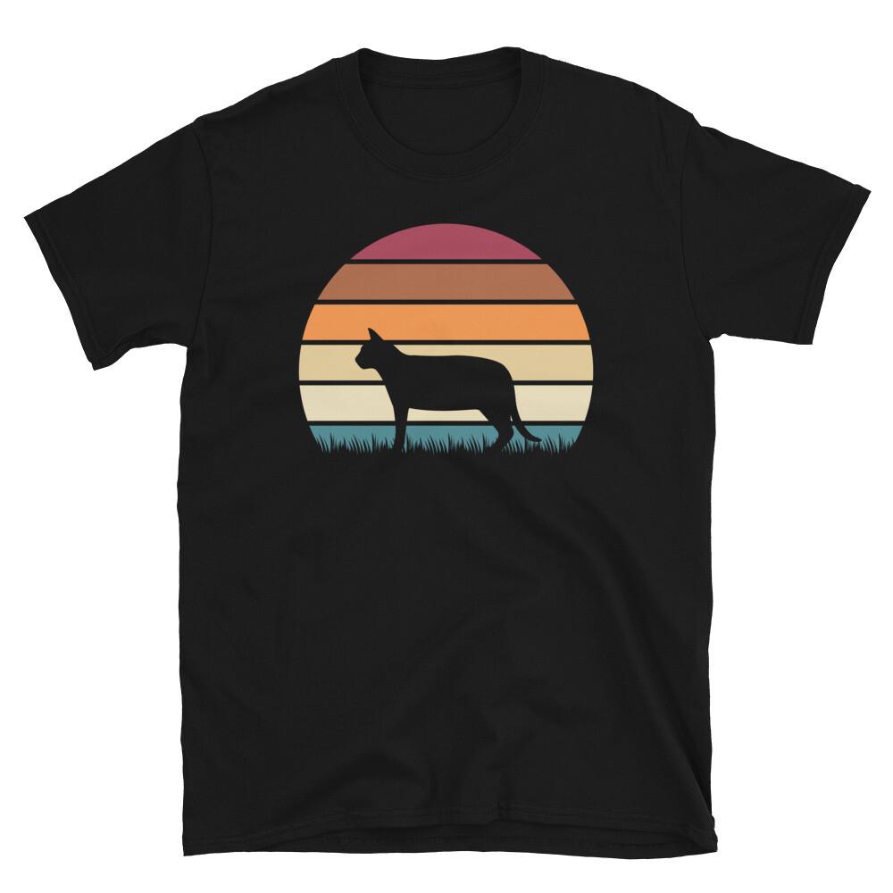 Retro Sonnenuntergang Kätzchen Katze Kalifornische getupfte Katze Kurzarm Unisex T-Shirt