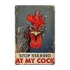 1 Stück, Vintage-Metallschild mit der Aufschrift „Chicken Stop Staring At My Cock“, Bauernhaus-Schild, Hühnerstall-Dekor für Haus, Bauernhof und Küche, 20,3 x 30,5 cm