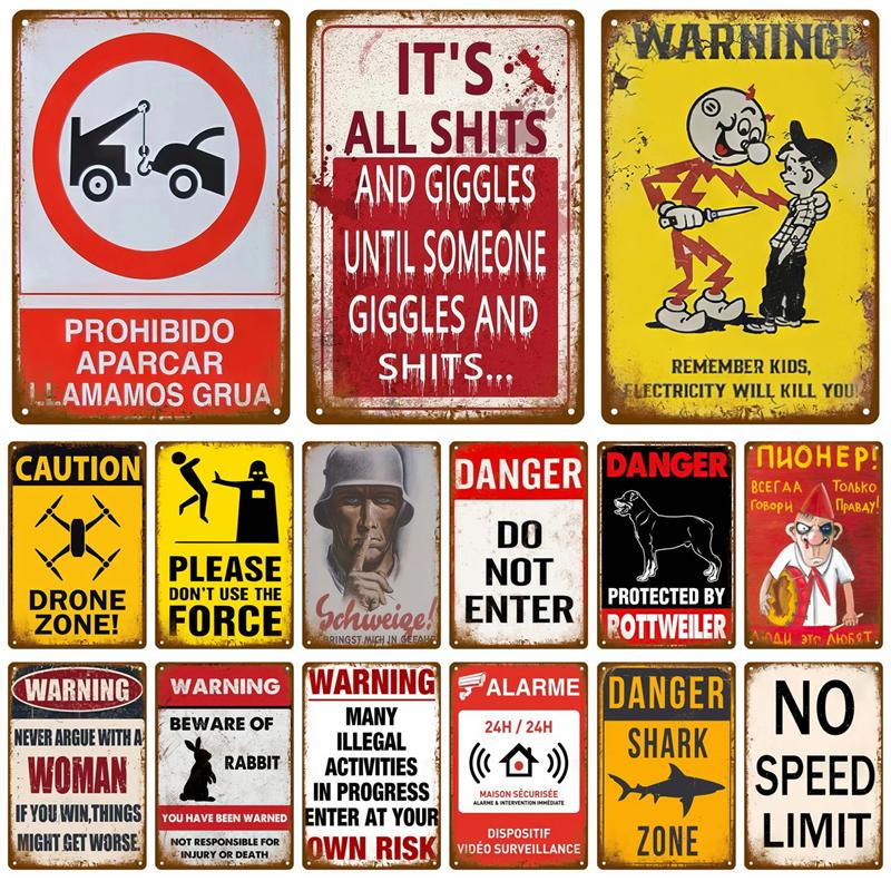 Metal Sign For Bar Pub Garage Cafe Club Man Cave Home Wall Decor Mural Plate Art Caution Tin Sign Warning Vintage Metal Plaque