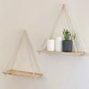Wooden Swing Hanging Hemp Rope Wall Shelve Mounted Floating Home Living Room Plant Flower Pot Tray Storage Garden Decoration