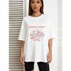 Übergroßes T-Shirt Weiß Goldener Weizen Berg Logo Print Freizeitkleidung Für Damen Sommer Outfit Streetwear Mode Top