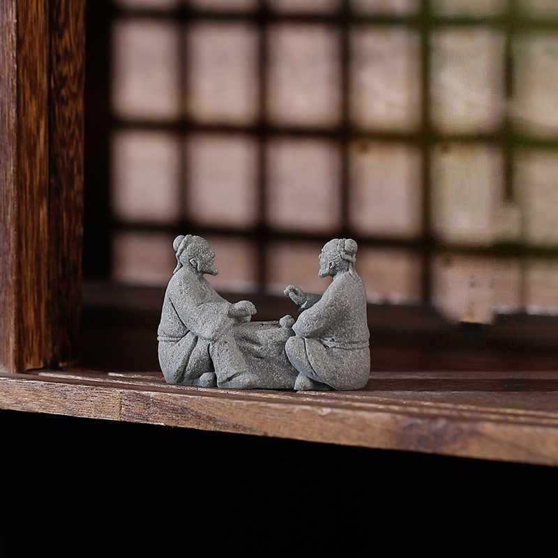1 Stück Miniatur-Landschaftsdekorationen, Miniatur-Menschenfiguren, chinesische ältere Statuen, die Schach spielen, Landschafts-Miniatur-Bonsai
