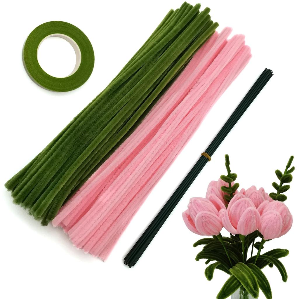 221 Pcs Craft Pipe Clearners Flower Set,Chenille Stem Pipecleaner Kit for Craft Tulip Bouquet Making,DIY Craft Projects and Hol