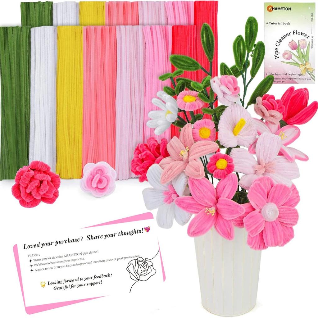 Pipe Cleaner Flowers Craft Kit, 7 Colors Pipe Cleaners Craft Flower Making Kit, Chenille Stems Pipe Cleaners Kit with Tutorial