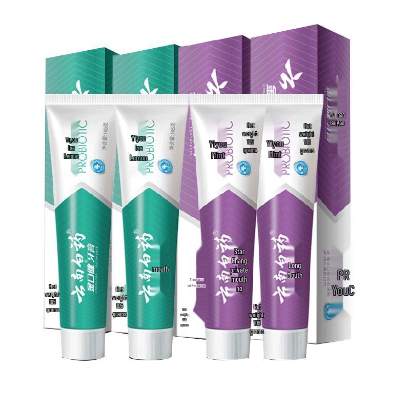 Yunnan Baiyao Probiotische Zahnpasta 4er-Pack (Eisgekühlte Zitrone Minze & Spritzige Minze)
