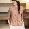 Modisches dünnes lockeres Hemd für Dreiviertelarm-Oberteil Retro-besticktes Hemd für Damen im Sommer Neu