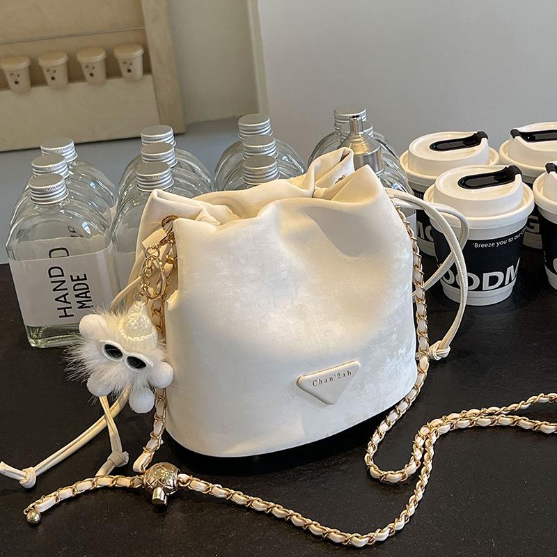 New niche design bag shoulder crossbody versatile trendy bucket drawstring chain bag