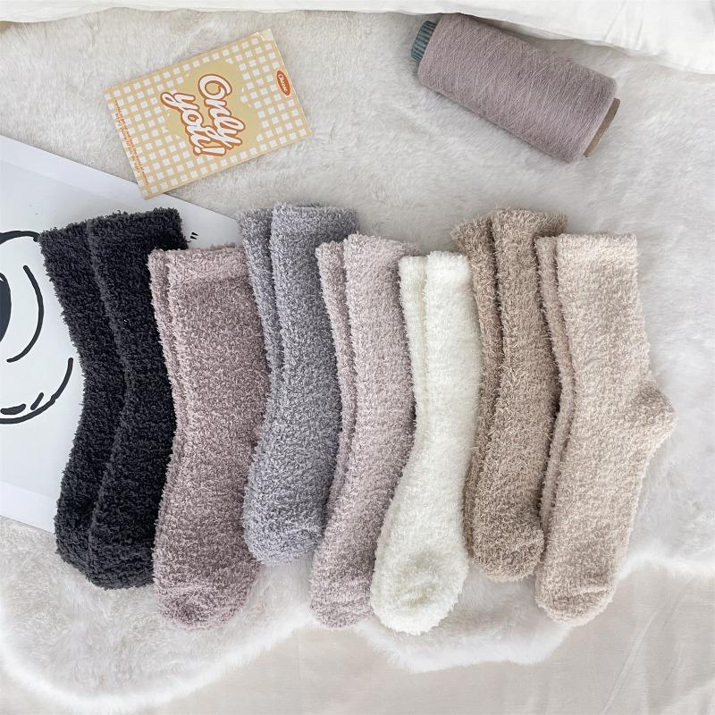 Nicht fusselnde Korallenfleece-Socken, Damen Einfarbige Haussocken, Halbfleece-Socken, Schlafsocken, Warme Fleece-Socken, Fleece-Bodensocken