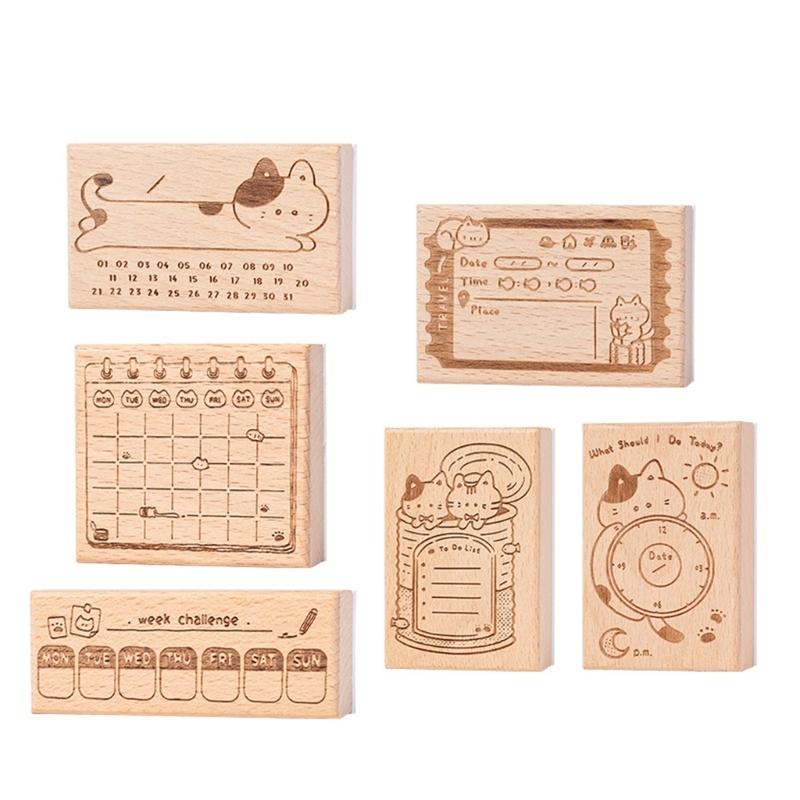 Wood Craft Stamp Vintage Scrapbooking Stamp Kitten Themed Stamp for Card Making Scrapbooking Journal Planner Photo Album