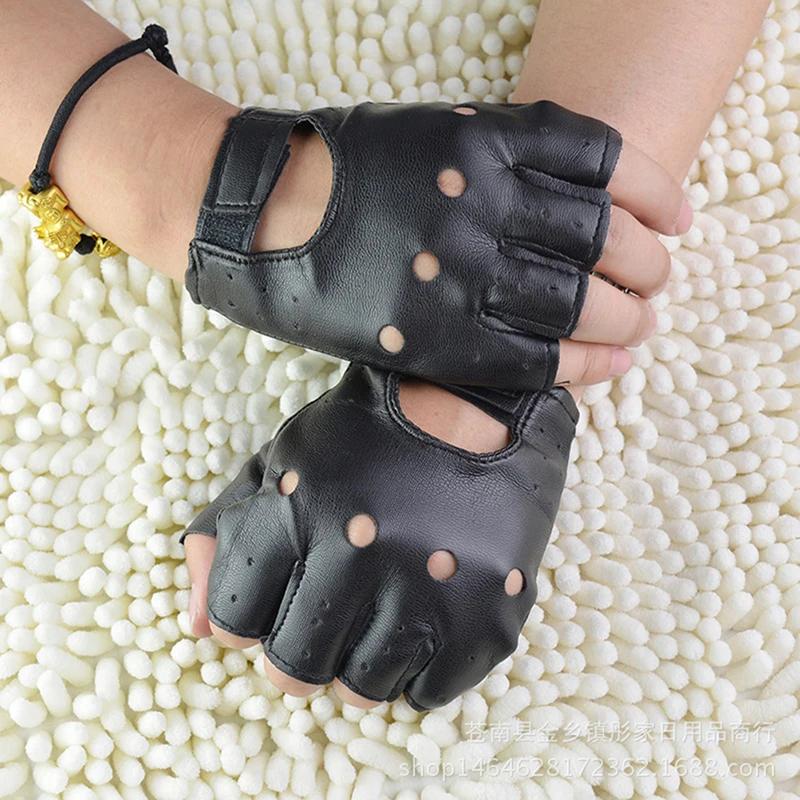 Unisex Half-Finger Artificial Leather Gloves Lightweight Theatrical Punk Hip-Hop Driving Motorcycle Performance Party Fingerless
