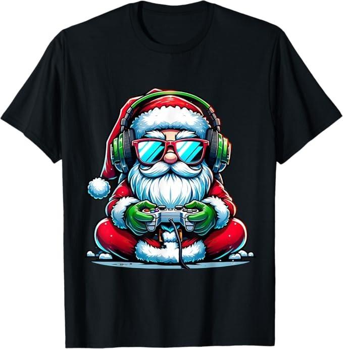Weihnachten Gamer Jungen Videospiel Weihnachtsmann Weihnachten T-Shirt
