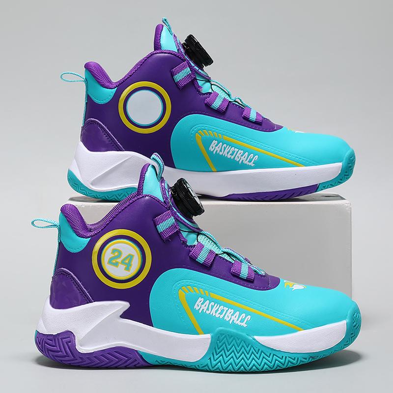 Herbst/Winter Kinderleder Drehverschluss Basketballschuhe für Jugendliche und Kinder Sport Professionelle Basketballschuhe