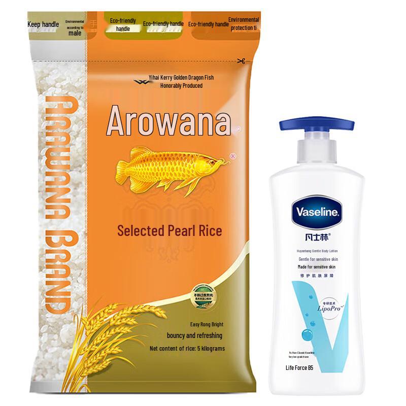 Vaseline Body Lotion 400ml & Arowana Rice 5kg Bundle
