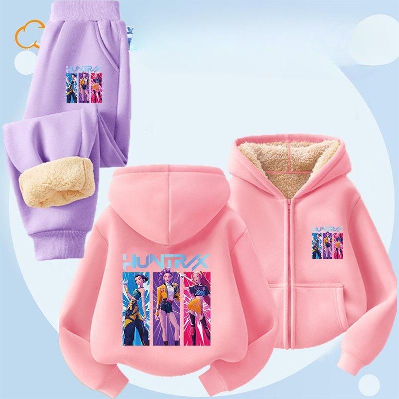 Zweiteiliges Fleece-Set „Hexenjagd“ im K-Pop-Stil für Kinder, ideal für Herbst und Winter, modische Kapuzenjacken für Jungen und Mädchen