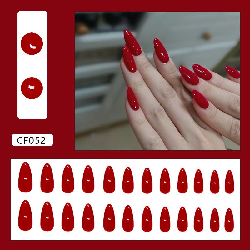 Einfaches Temperament Rot und Weiß Mittellange Mandelformnägel Modische Maniküre-Patches Abnehmbare Tragbare Nägel 24 Stück