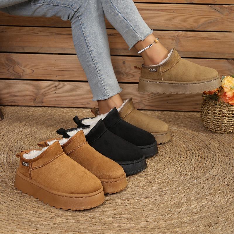 Damen Chunky Plateau Schneestiefel - Runde Zehenpartie Schlupf-Stiefeletten mit Plüsch-Faux-Fur-Futter für den Winter, Gemütliche Retro-Stiefel