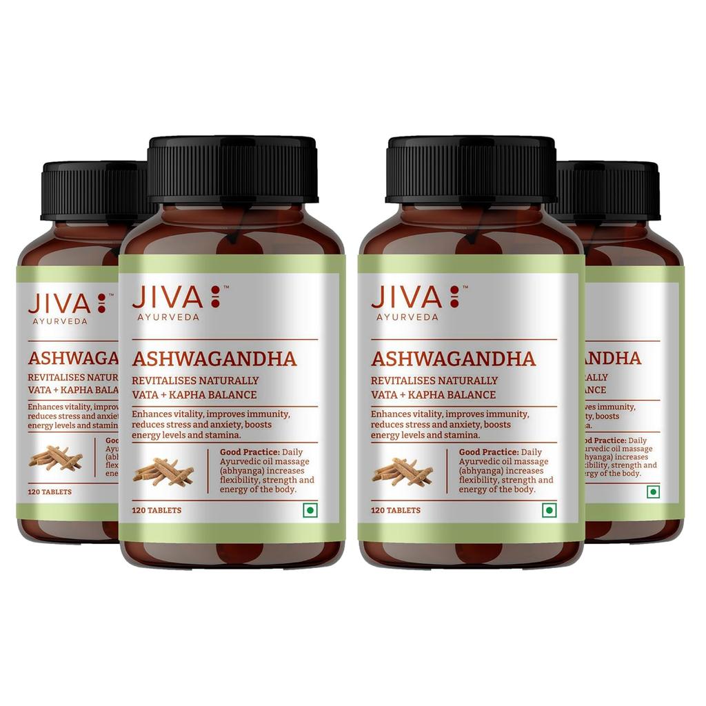 Jiva Ashwagandha Tabletten 500mg 120 Tabletten 4er Pack Reines pflanzliches Nahrungsergänzungsmittel für Energie & Vitalität