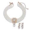 1Set Luxus Mehrschichtige Imitationsperlenkette Ohrringe Für Frauen Mädchen Temperament Schmuck Braut Strass Hochzeitsschmuck