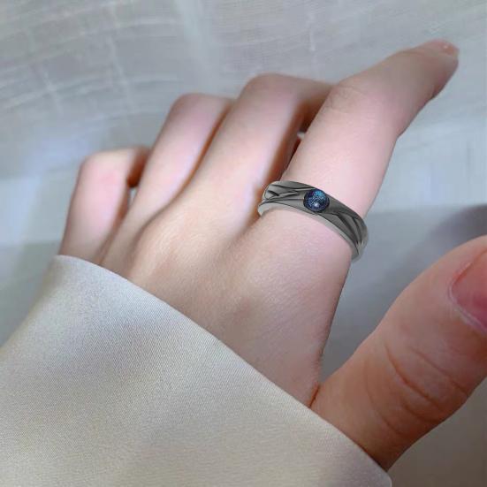 Couple Ring Vintage Glazed Black White Faux Moonstone Adjustable Opening Design Decorative Gift Student Trend Open Ring Jewelry Daily Wear