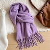 Winter Wool Scarf Women Luxury Two-Sides Cashmere Scarf Thickened Warm Shawl Classic Tassels Scarf Solid Soft Shawl