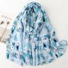 Luxury Women Viscose Scarf Summer Beach Shawl Long-Tailed Cat Print Cotton Linen Feeling Tassel Muslim Hijab Wrap Turban