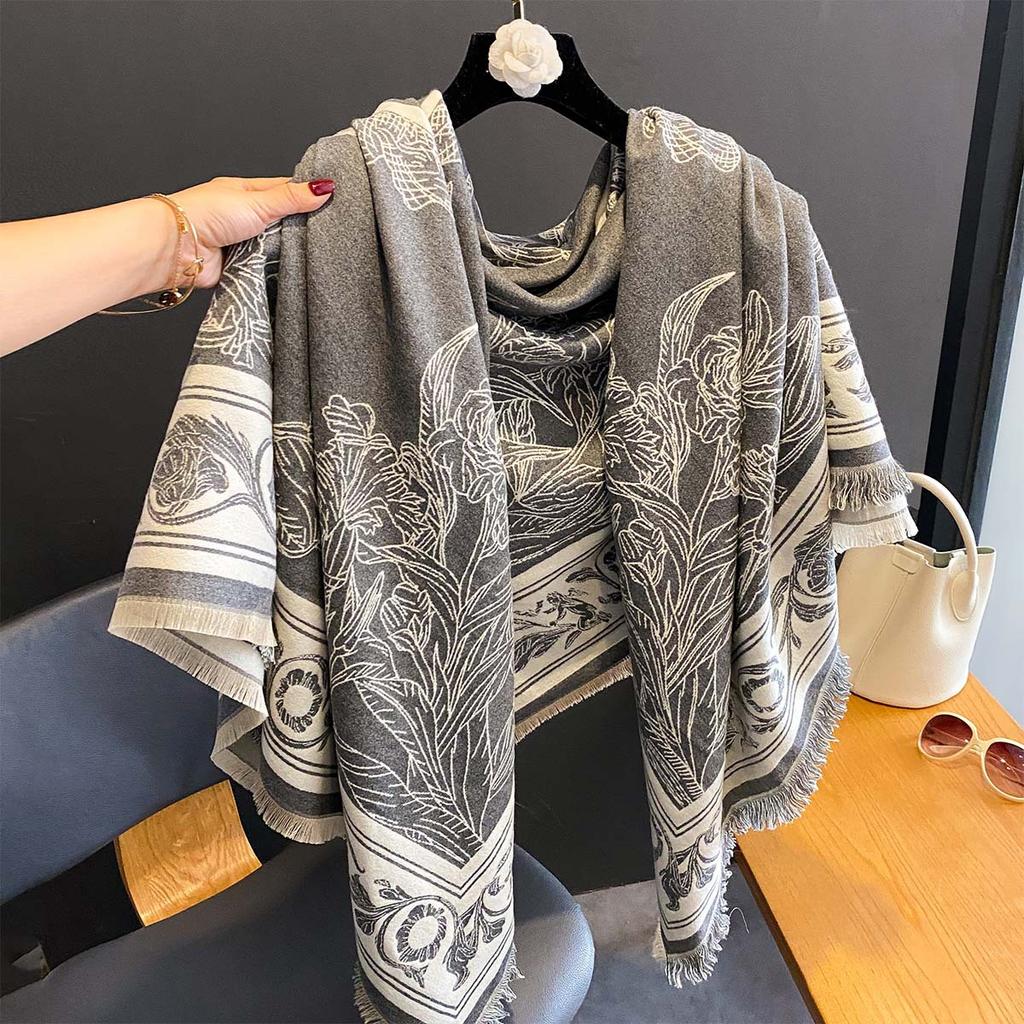 Women Winter Wrap Scarf Double-Sided Imitation Cashmere Fashion Shawl Wrap Vintage Thick Bufanda Blanket Large Square Scarf