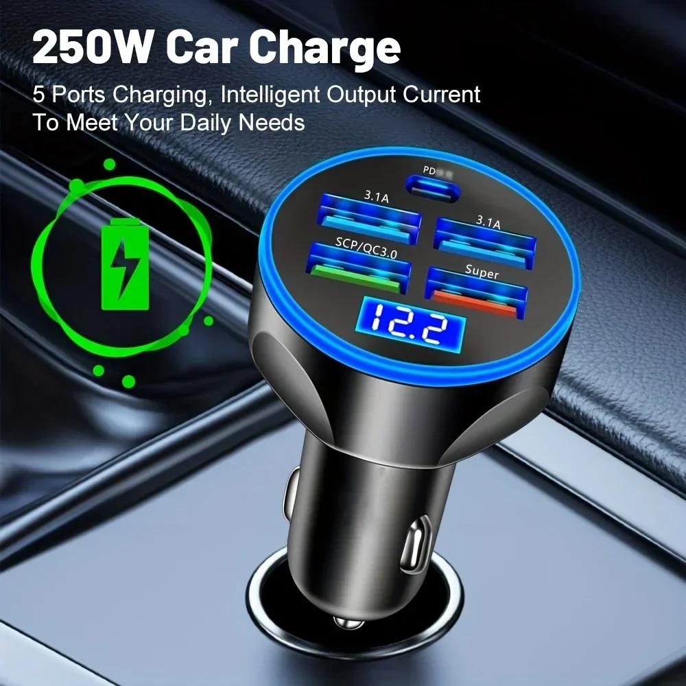 Universal Mobile Phone PD Type C Car Charger 6 Ports Car Smartphone Fast QC 3.0 Charging For IPhone Samsung Xiaomi Huawei