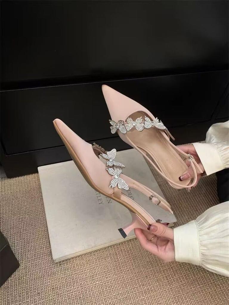 Mode Damen Kristall High Heels Sandalen Schuhe Schmetterling Spitz Zehen Hausschuhe 2025 Designer Sommer Elegant Partykleid Markenschuhe Mujer