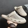 Mode Sandalen für Herren Sommer Flache Oberseite Hochwertige Sandalen Netzstickerei Weiche Sohle Outdoor Rutschfest Camping Atmungsaktive Freizeitschuhe