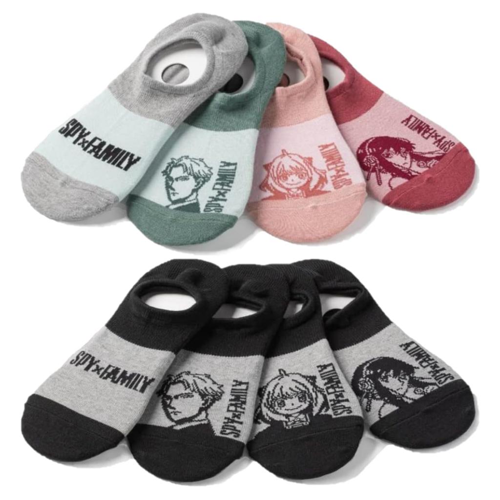 Okamoto Spy x Family x Cocopita Anya Charakter Fuß Speziell für Sneaker Socken, 4er-Set, Socken, Rutschfeste Überzüge,