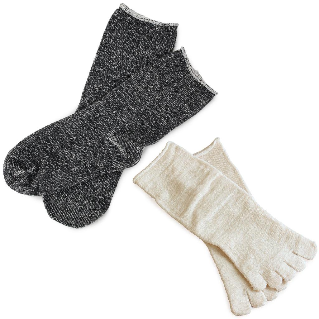 Hiorie Silk Cotton Set of 2 Socks with Heathered Charcoal Silk Japanese-Made Anti-Cold Socks, Inner, Outer, Medium, Pairs, Five-Toe Cover,
