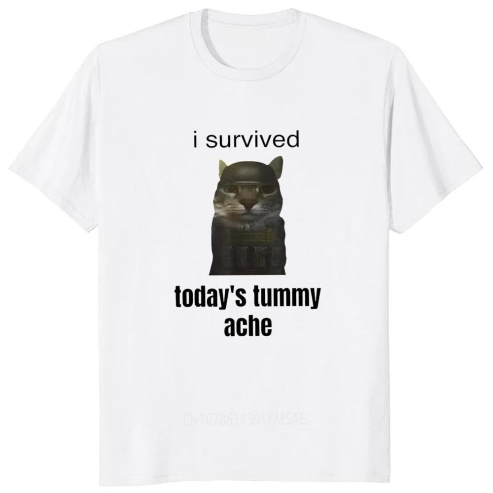 Mode Manga Neu Ich habe die heutigen Bauchschmerzen überlebt T- Lustige Witze Meme Trend T-Shirt Tops Lässig Baumwolle Weich Unisex EU Größe