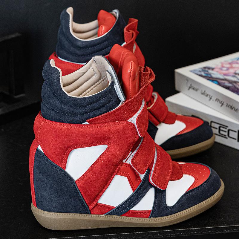 Professionelle Damenstiefel mit innerer Erhöhung 8 cm hoch, High-Top, innerer Keilabsatz zur Höhenerhöhung, Klettverschluss, Freizeitschuhe, kleine Damengröße