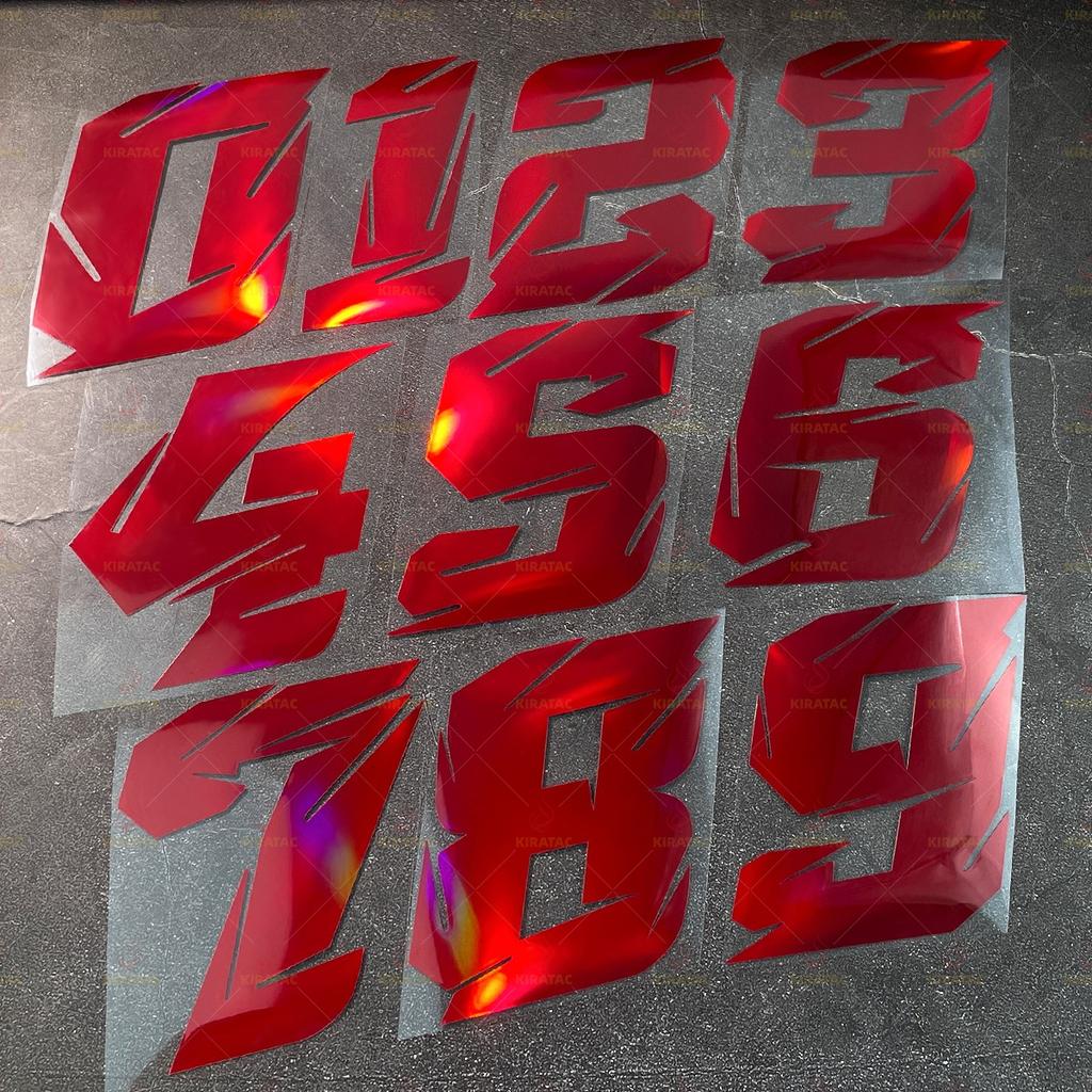 2 Stück Roter Laser Motorradnummer Aufkleber Wasserdicht für Motorradhelm Verkleidung Kraftstofftank Roller Karosserie Universelle Vinyl Aufkleber