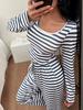Women's Two-piece Set with A Square Trendy Striped Design Comfortable Casual Pajama New Striped Long-sleeved Wide-leg Pants