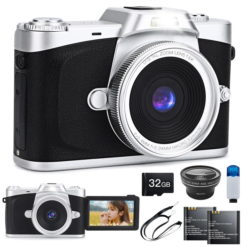 Moledro 4K Digital Camera, 68MP, 180° Rotating Display, Wide-Angle Lens, 32GB Micro SD Card, 16x Digital Zoom, Autofocus, Image Stabilization,