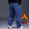 Herbst und Winter Plus Samt Übergröße Jeans Herren Locker Gerade Weitbein High-Waist Hose