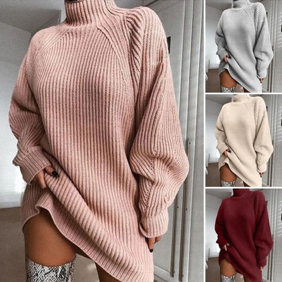 Damen Herbst Rollkragen Pulloverkleid Oversized Zopfmuster Langarm Kurzes Kleid Lässiger Pullover Minikleid