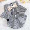 Cute Striped Cat Dog Shirt with Bow Tie Summer Short Sleeve Pet Clothing Walking Outfit for Poodle Bichon Small Dogs