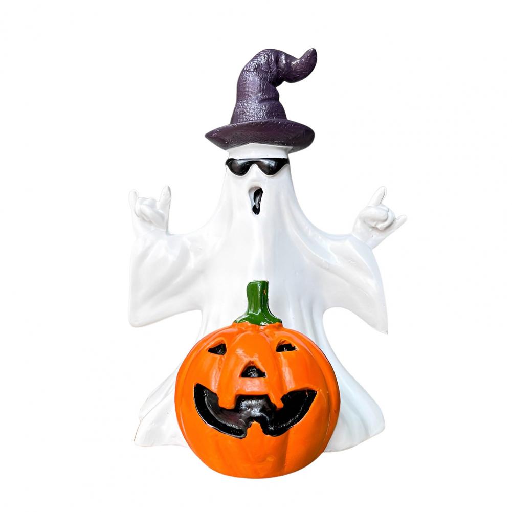 Halloween Ghost Statue Sunglasses Ghost Ornament Spooky Halloween Ghost Pumpkin Statue with Hat Sunglasses Resin for Halloween