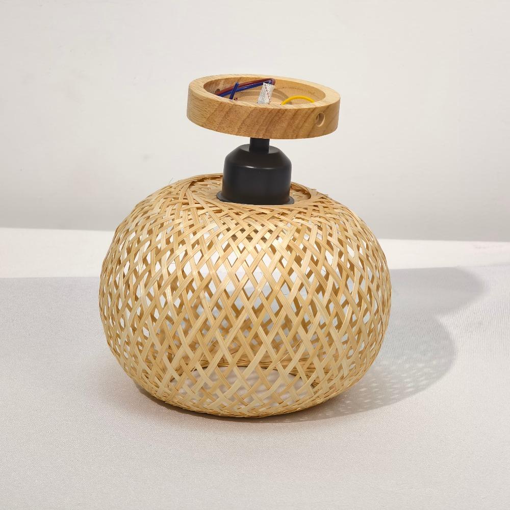 Hand-woven Bamboo Ceiling Lamp Vintage Pastoral Wooden Tea Room Rattan Retro Creative Wabi Sandy Wind Bedroom Ceiling Lamp